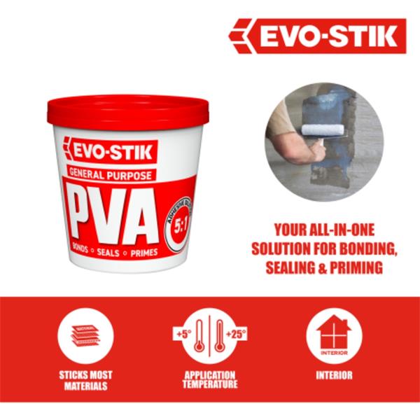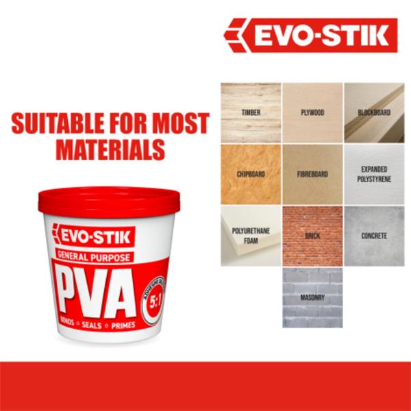 Discover the versatility of Evo-Stik General Purpose PVA, your go-to adhesive solution for a variety of projects. This high-quality PVA glue is designed to provide strong and durable bonds across diverse materials including wood, paper, and cardboard. Whether you’re tackling crafts, DIY projects, or professional repairs, Evo-Stik ensures reliability and ease of use.
