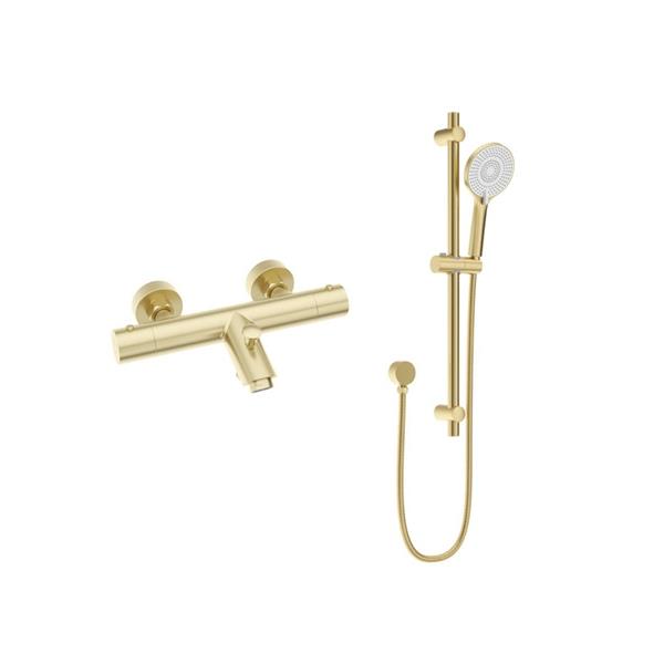 Experience the perfect blend of luxury and functionality with the Sonas Form Thermostatic Bath Shower Mixer & Alita Slide Rail Kit in Brushed Gold. This exquisite fixture not only elevates your bathroom’s aesthetic but also ensures a smooth and safe bathing experience.